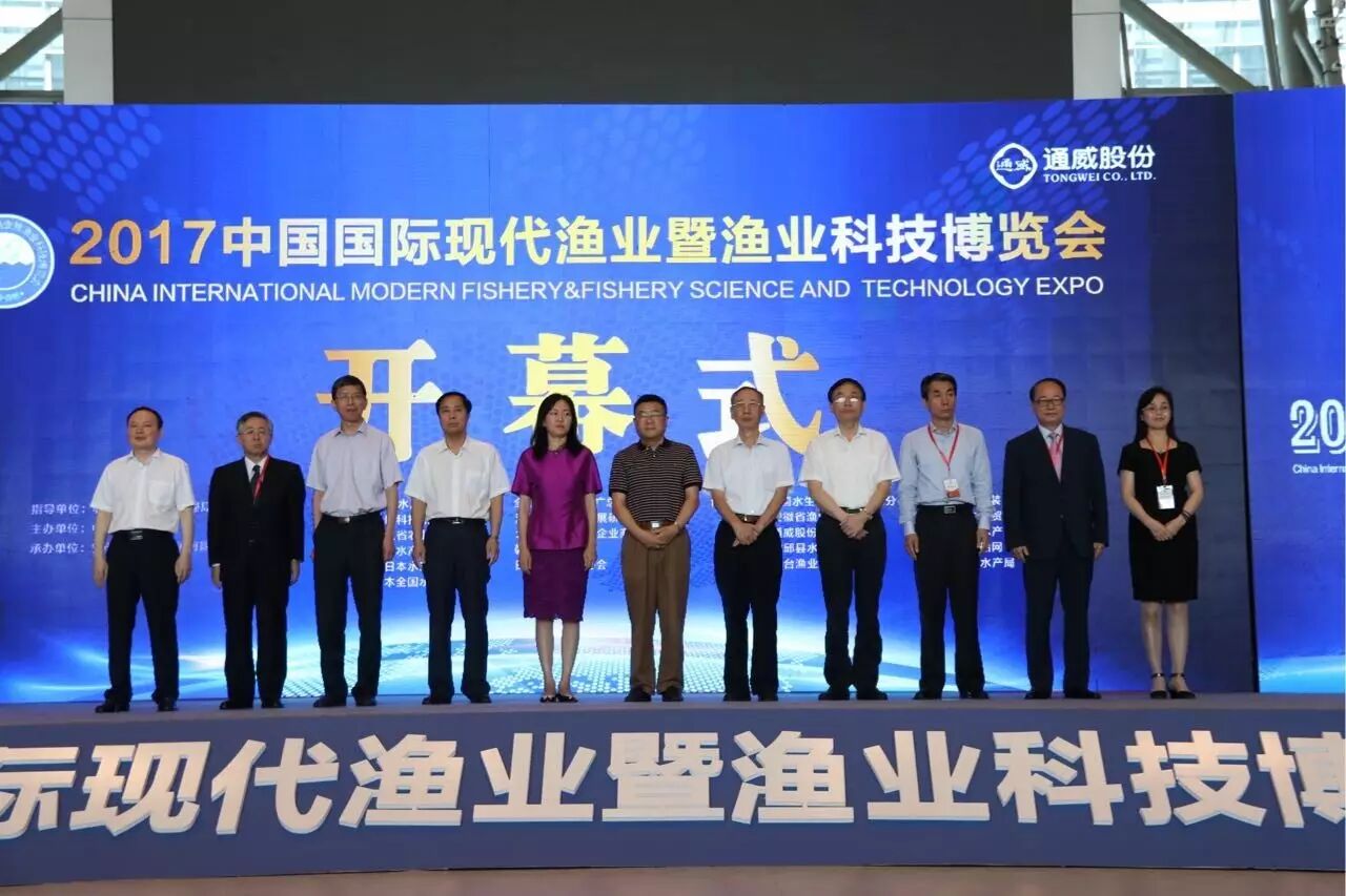 2017年6月16日,由中国渔业协会主办,农业部渔业渔政局指导,中国水产科学研究院、全国水产技术推广总站等单位联合支持,通威股份独家赞助的“2017中国国际现代渔业暨渔业科技博览会”在合肥滨湖国际会展中心盛大开幕。中国科技新闻学会理事长宋南平,中国渔业协会会长赵兴武,中国水产科学研究院院长崔利锋,全国水产技术推广总站站长、中国水产学会秘书长肖放,日本水产会会长白须敏朗,韩国水产会会长金永奎等领导莅临开幕式。