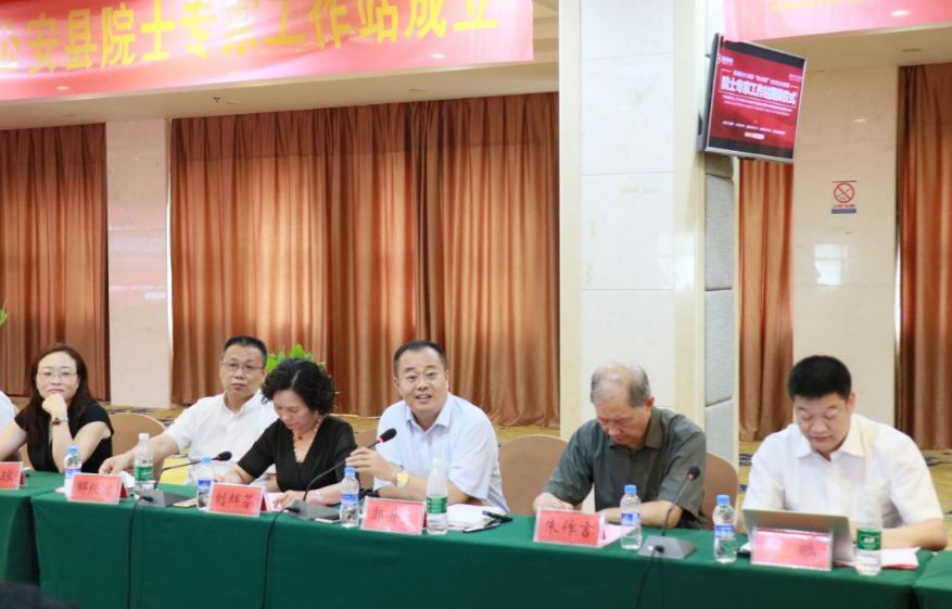随后,通威股份郭异忠总裁,总裁助理刘辉芬,公安县县委书记刘润长,荆州市科协党组书记、科协主席邵振东,中科院水生所党委书记、副所长、研究员解绶启,公安县人大常委会副主任黄贤泽等上台为院士专家工作站揭牌。
