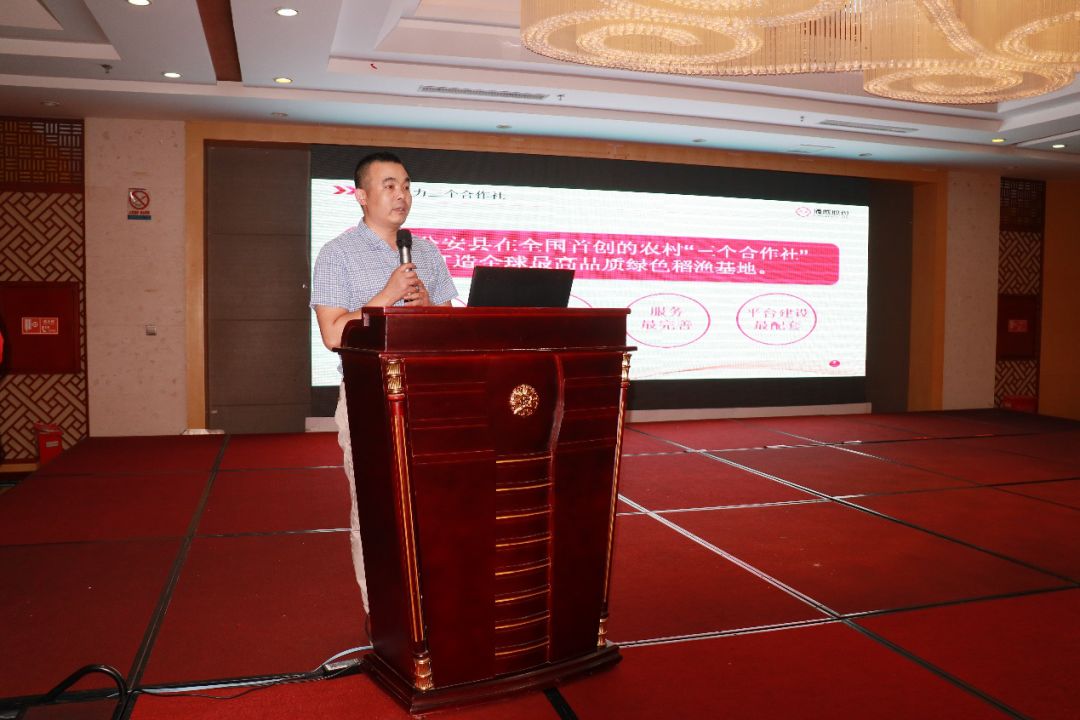 会议最后,公安县县委书记刘润长发表讲话。刘书记首先对郭总、朱院士一行到访公安县表示热烈欢迎和衷心感谢。刘书记指出,公安县有着坚实的农业基础,被称作“江南鱼米之乡”,是全国重要的水产品生产基地。以当地葡萄产业为例,30年来从无到有,如今已成为长江中下游最大的葡萄生产基地,因此公安县有充分的信心与通威携手打造中国小龙虾第一品牌。刘书记表示,公安因水而生,因水而兴,大力发展“双水双绿”立体生态农业是当地经济转型、产业结构调整的有力跳板。当前,公安县业已打造拥有一支务实、优秀的“懂农业、爱农村、爱农民”的三农干部队伍,也有着广泛良好的群众基础,公安县发自内心地欢迎像通威这样有着高度社会责任感和推动农业复兴志向的企业。公安县创立的农村“三个合作社”提高了农民的组织程度,也提高了三农在当代市场中的话语权,将此机制与通威集团刘汉元主席的民本情结、通威股份郭异忠总裁的三农情怀及通威的雄厚实力相结合,相信通威股份公安县“双水双绿”生态农业科技园项目的建设和发展一定能够真正实现农民增效、政府增收、社会受益、企业发展的综合多赢局面,实现新时代农业转型升级的使命。