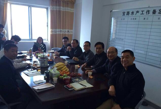 12月13日,通威股份副总裁易刚辉、技术总监张璐、海南通威副总经理宋文超等一行人到宝路水产海口办事处,与宝路水产董事长、执行副总经理汪玉祥、销售总监纪东卫、生产总监李伟等人碰面,一同商讨双方合作方案。