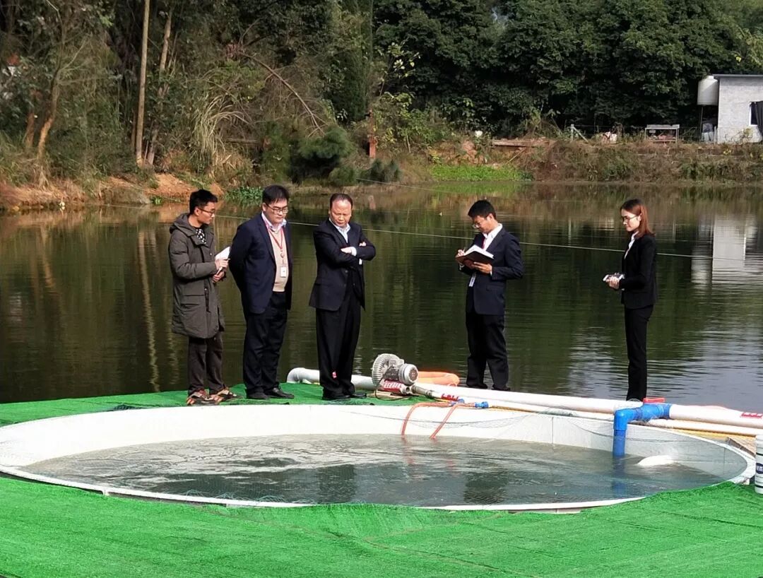 现场,刘汉元董事长视察了成都水产科技公司自主产权箱式循环水养殖系统、漂浮式圆形循环水养殖系统、尾水处理系统和陆基圆形玻璃钢养殖系统,听取了梁总关于公司今年开展相关模式研究的进展和效果的简要汇报。期间,刘汉元董事长就各系统成本、功率、过程管理等养殖系统关键技术及机械设备配置等情况进行了详细询问。