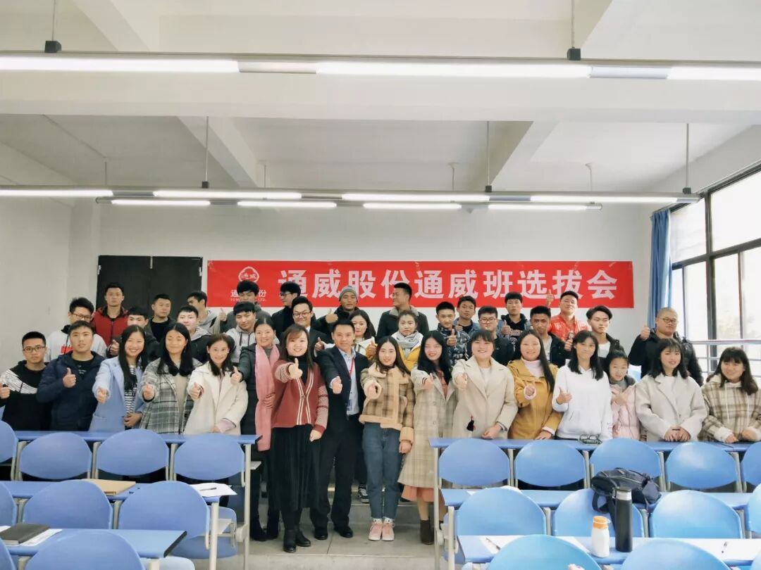 为贯彻落实《国家中长期教育改革和发展规划纲要(2010-2020)》、《国务院办公厅关于开展国家教育体制改革试点的通知》等有关文件的精神,通威股份与四川省水产学校开展深度校企合作,决定在四川水产学校郫县校区二年级学生中组建“通威班”,旨在为通威培养和储备一批热爱行业、具备专业能力的水产人。此前,经过层层面试,共选拔出包含水产养殖、畜牧兽医、动物防疫与检疫、食品生物技术、饲料与营养科学专业的学生23名。