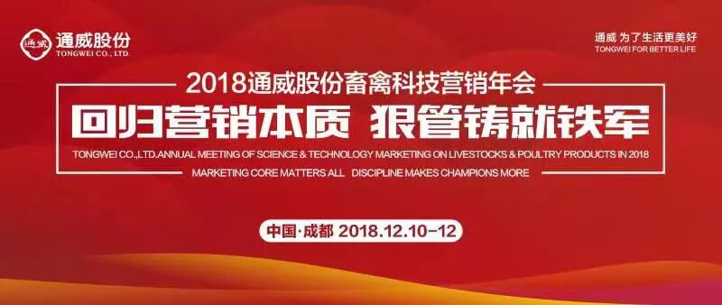 2018年12月10日至12日,一年一度的通威股份畜禽营销年会即将在通威国际中心隆重启幕。本次大会将集结13大战区、30家公司、两百余位营销将士,共同围绕“回归营销本质,狠管铸就铁军”的大会主题,深度探讨通威畜禽料2019 年的突破之路。从高处谋划,从低处着手,“想清楚,执行到位”,全员共同商讨畜禽板块增量点及增量路径。统一战略思想、回归营销本质、聚焦尖刀产品、强化业绩追踪,新时代的集结号已经吹响,那些在一线奋勇争先、中流击水的通威战士,又将踏上新的征程!
